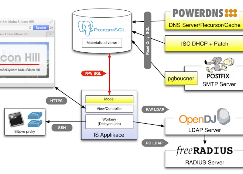 Informační systém zahrnuje správu členů klubu (uživatelů), členských příspěvků a správu sítě a síťových zařízení. Dále IS zajišťuje tyto služby: